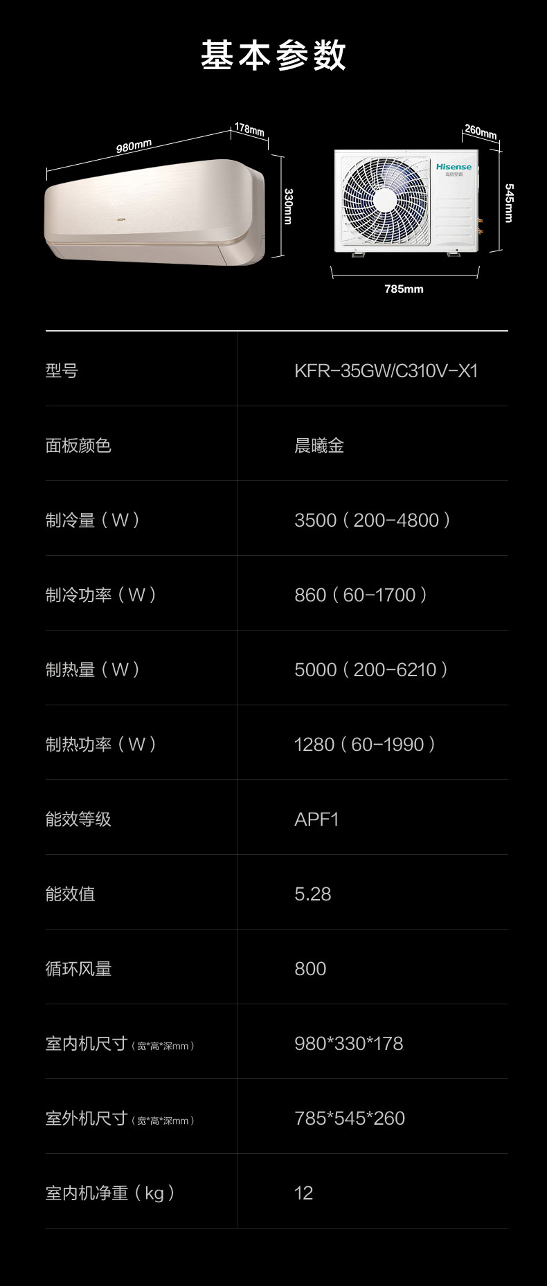 首页> 家用电器> 大家电> 挂机空调> 海信空调KFR-35GW/C310V-X1璀璨C3 1.5匹空调新一级新风智能变频冷暖自清洁低噪卧室壁挂式