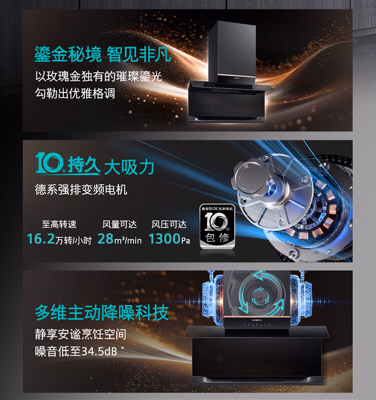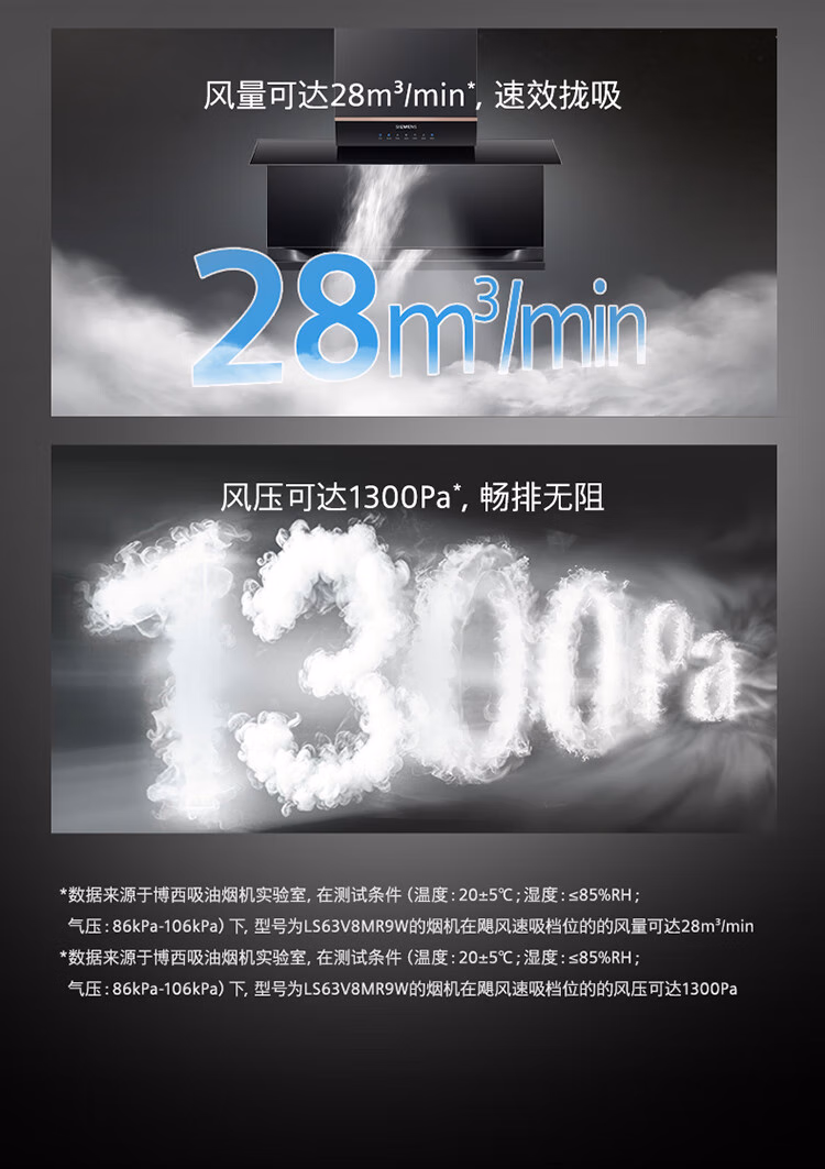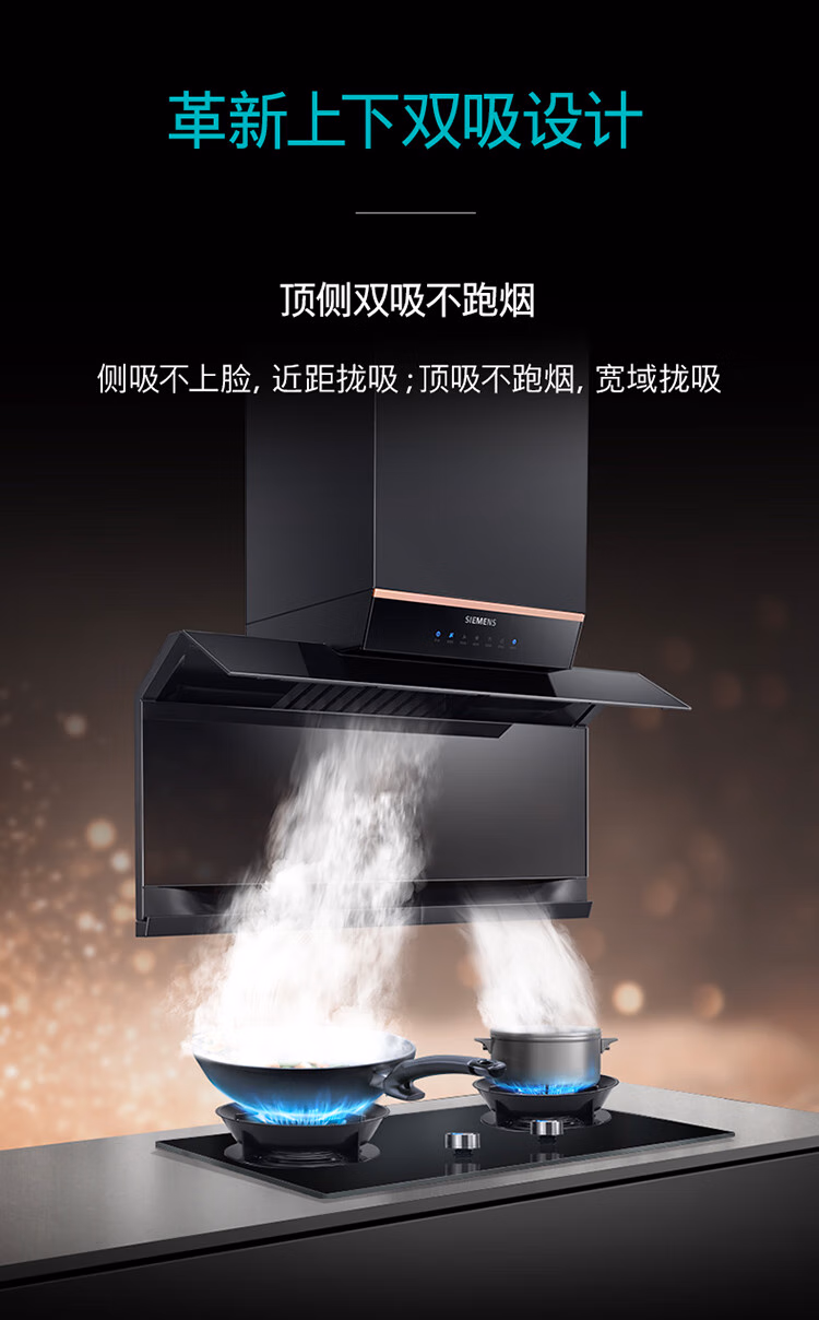 西门子烟机LS63V8MR9W黑色家用顶侧双吸式油烟机抽油烟机28m³大吸力智能风速调节智能自清洁