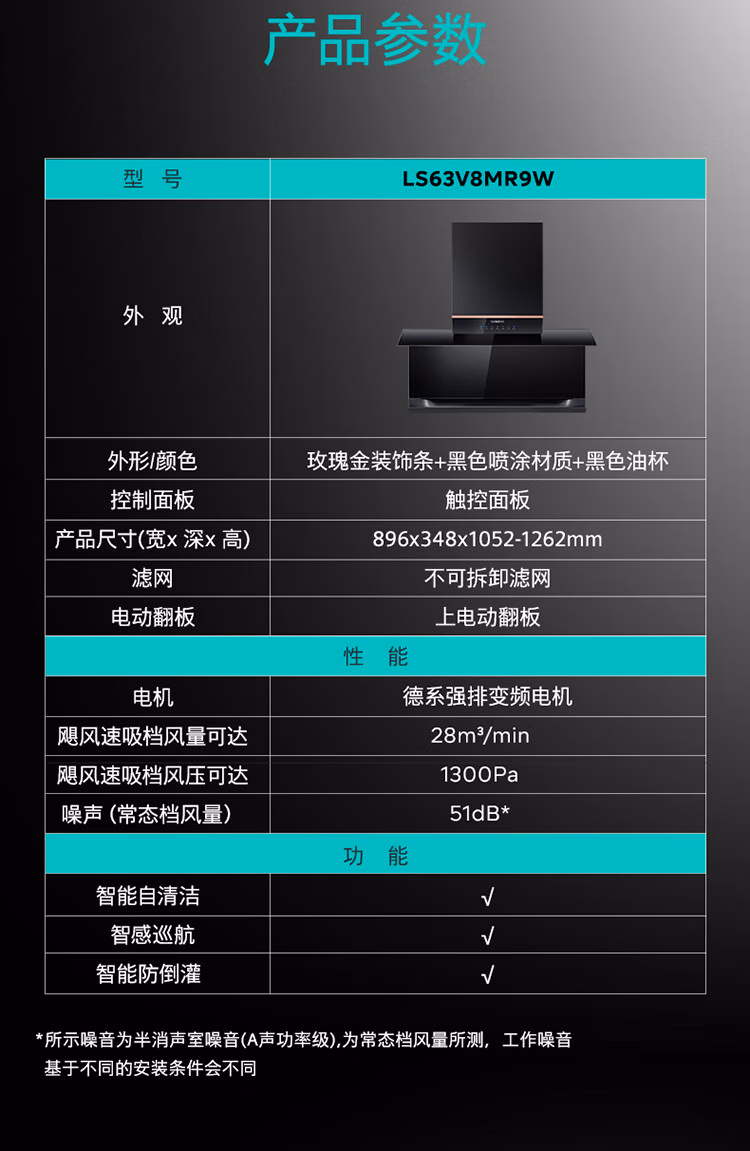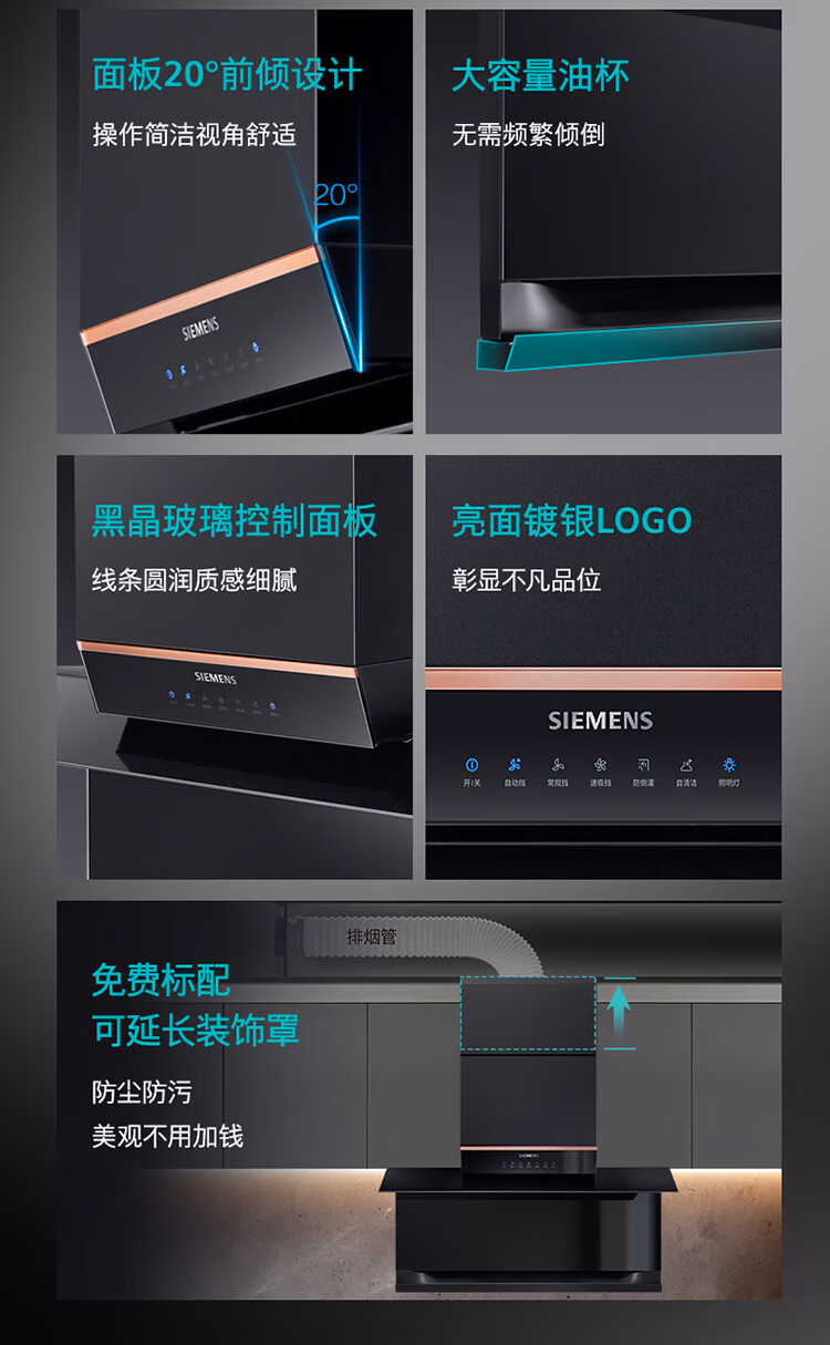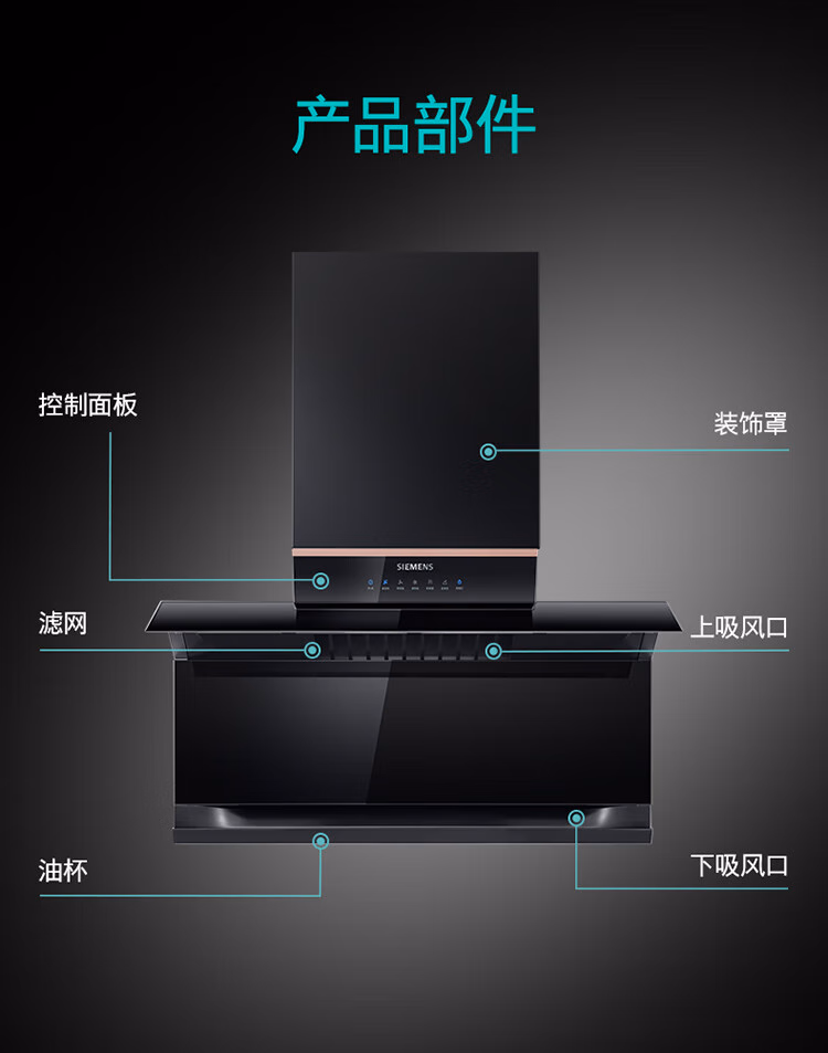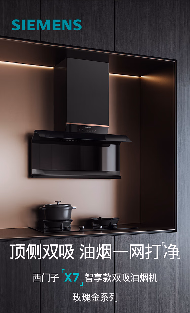 首页> 家用电器> 厨卫大电> 烟机> 西门子烟机LS63V8MR9W黑色家用顶侧双吸式油烟机抽油烟机28m³大吸力智能风速调节智能自清洁