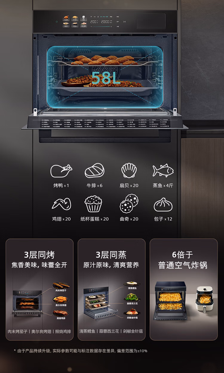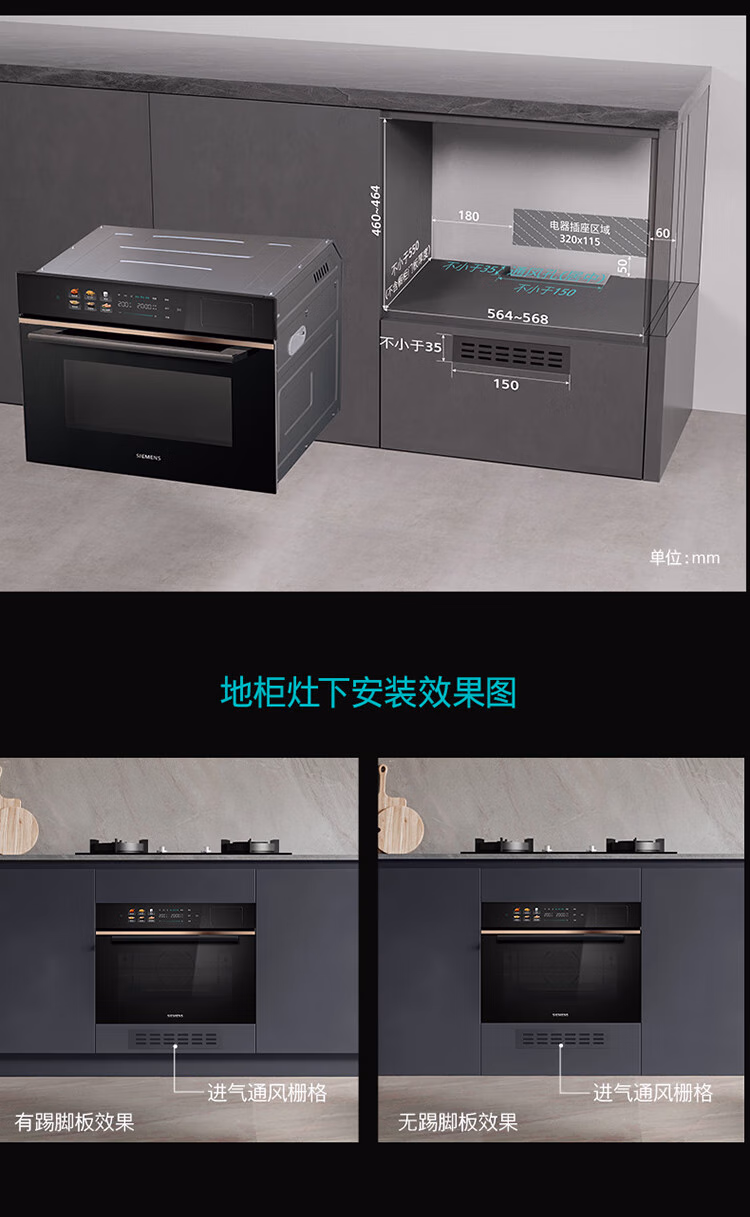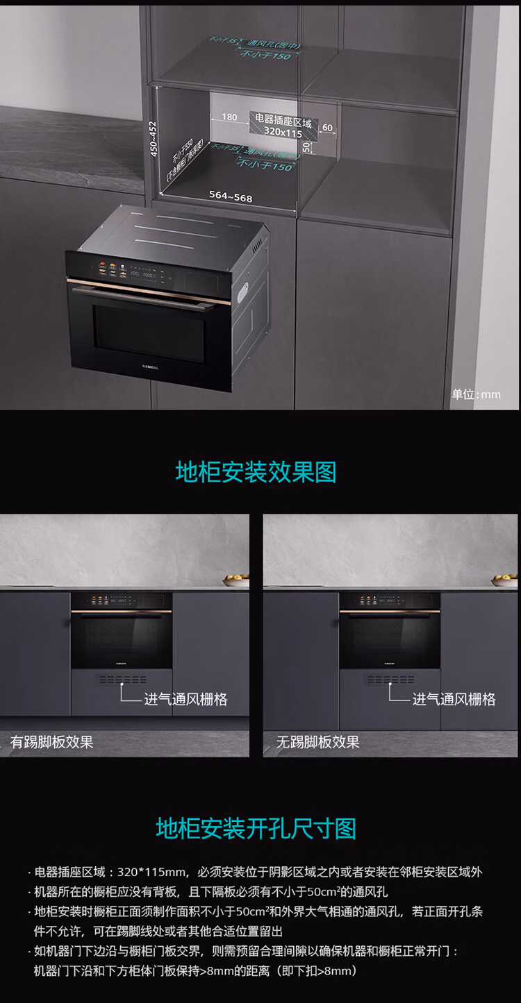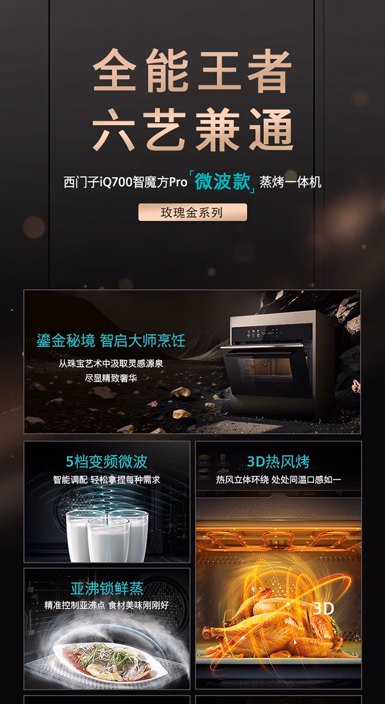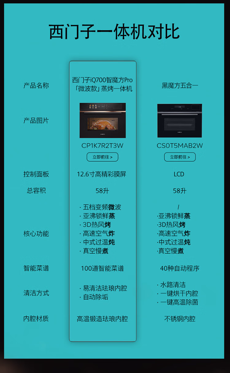 首页> 家用电器> 厨房小电> 烤箱/蒸箱> 西门子蒸烤箱 CP1K7R2T3W IQ700家用嵌入式微蒸烤一体机58L大容量 多功能六合一
