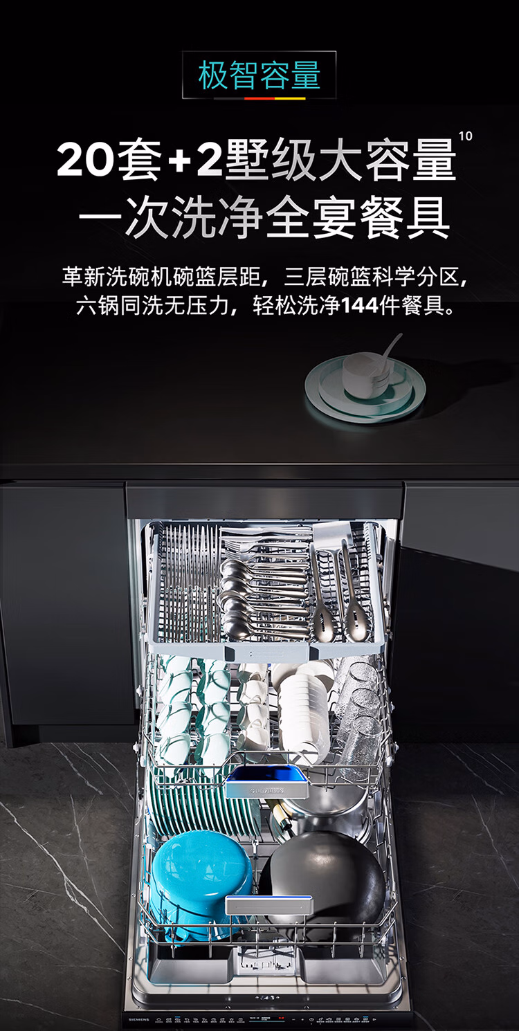 西门子洗碗机SJ45ZB99MC智净魔方Pro洗碗机20+2套晶蕾烘干智能家用全自动洗碗机 240小时长效烘干 AI智洗