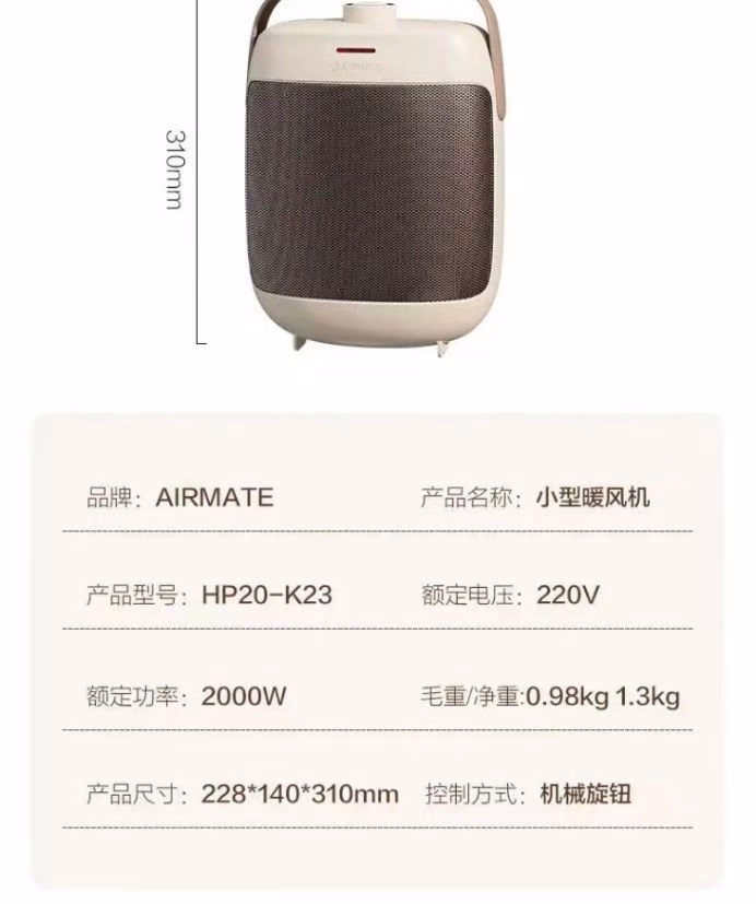 首页> 家用电器> 生活电器> 取暖电器> 艾美特电暖器暖风机HP20-K23小型取暖器2000W大功率暖风机浴室防水电暖风热风电暖器节能烤火炉