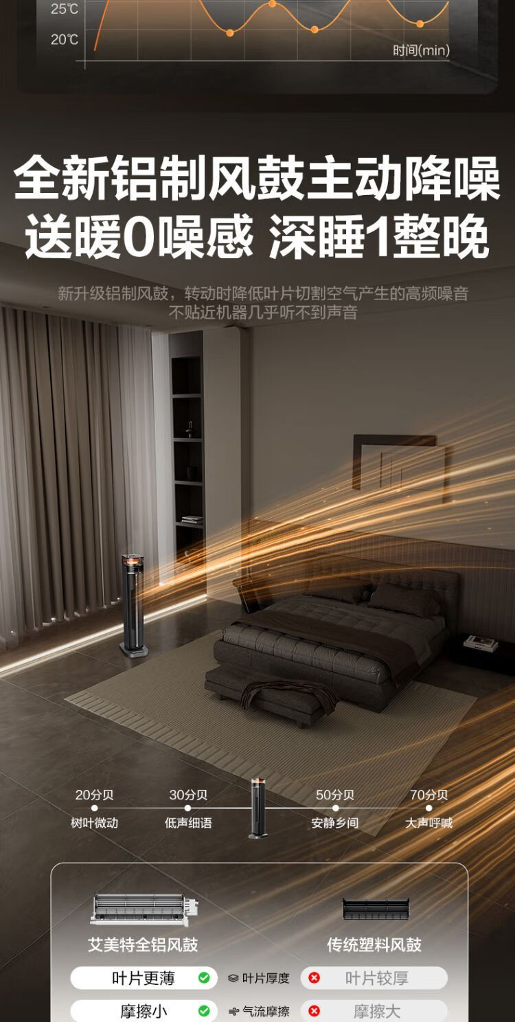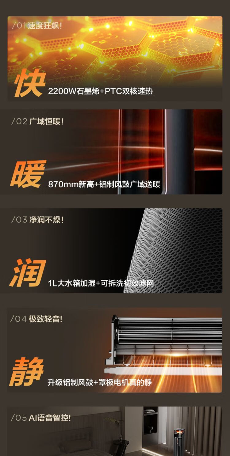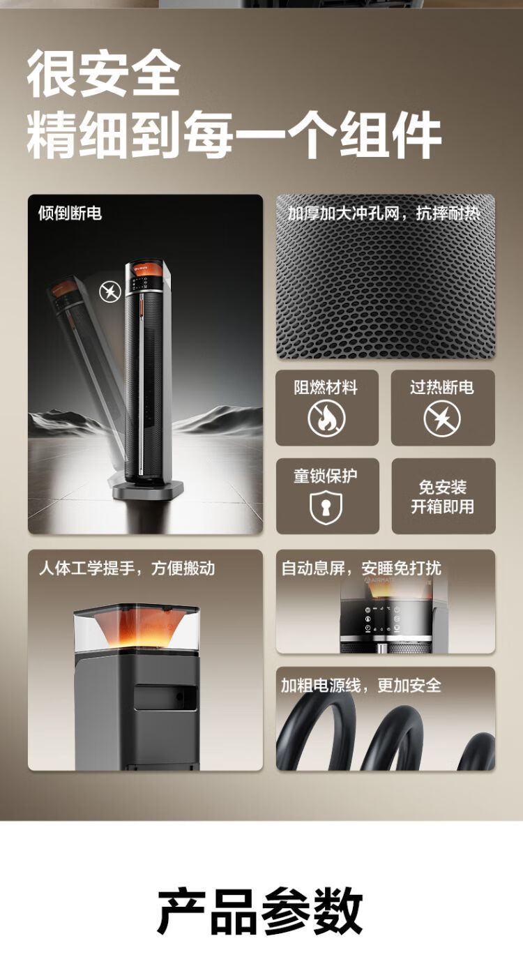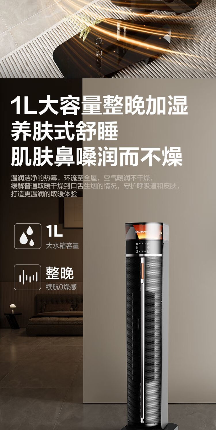 艾美特暖风机HP21-SRU88暖风机取暖器家用2200W 立式摇头暖气节能取暖器