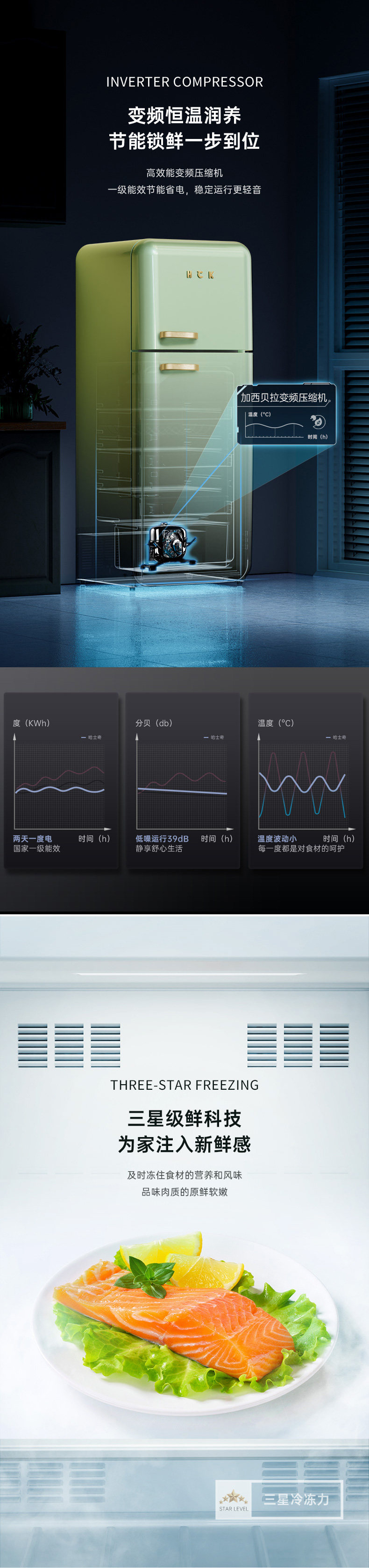 哈士奇冰箱 双门复古冰箱进口家用客厅小型大容量网红高颜值 复古高颜值BCD-253RS 浅绿色